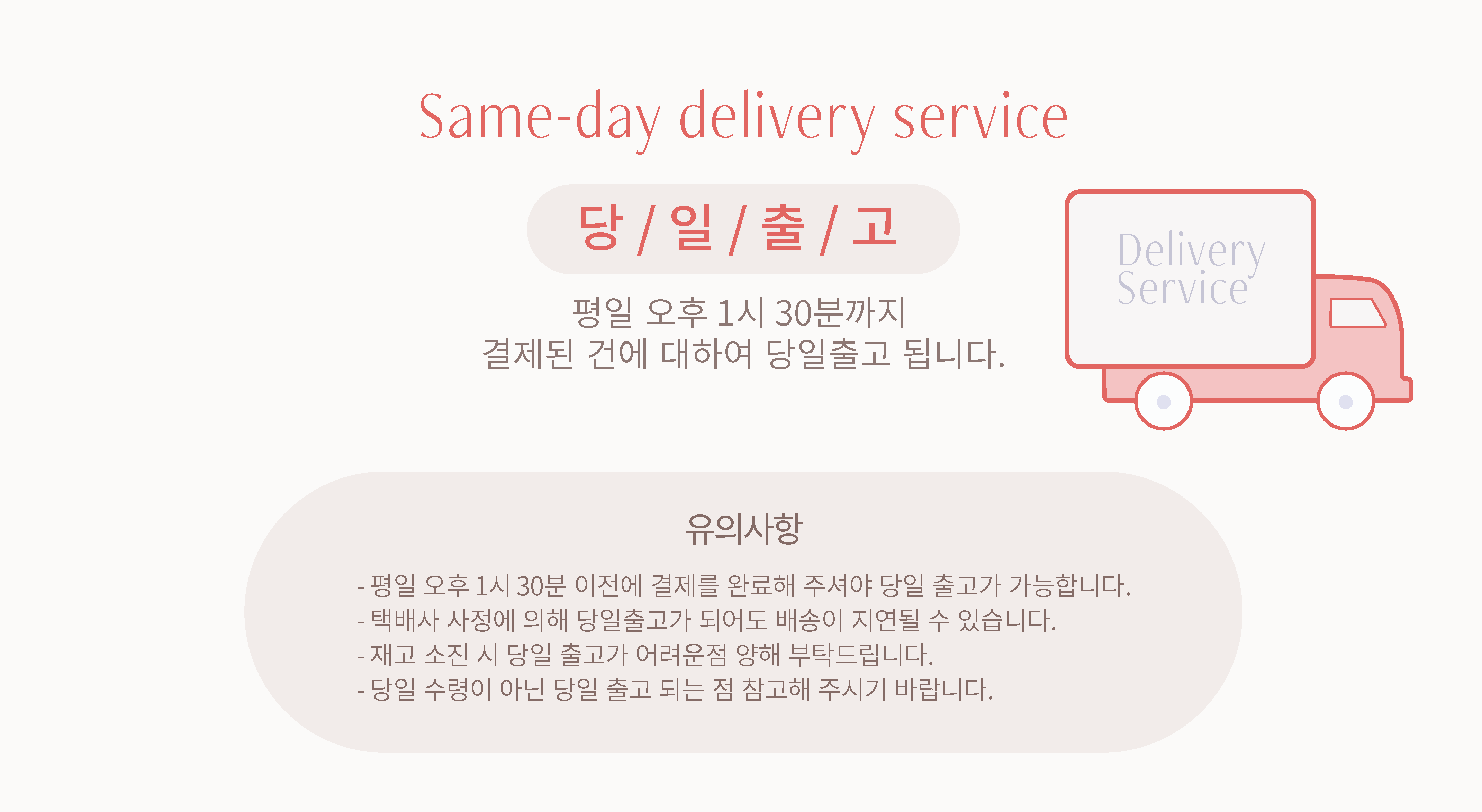 *판매자 귀책사유 : 상품파손, 오배송, 상품정보 상이 혹은 기타 서비스 및 상품의 불만족. 그외 배송이 지연되거나 품절 발생 시 구매자에게 개별 연락 후 취소 혹은 교환처리 해 드립니다.